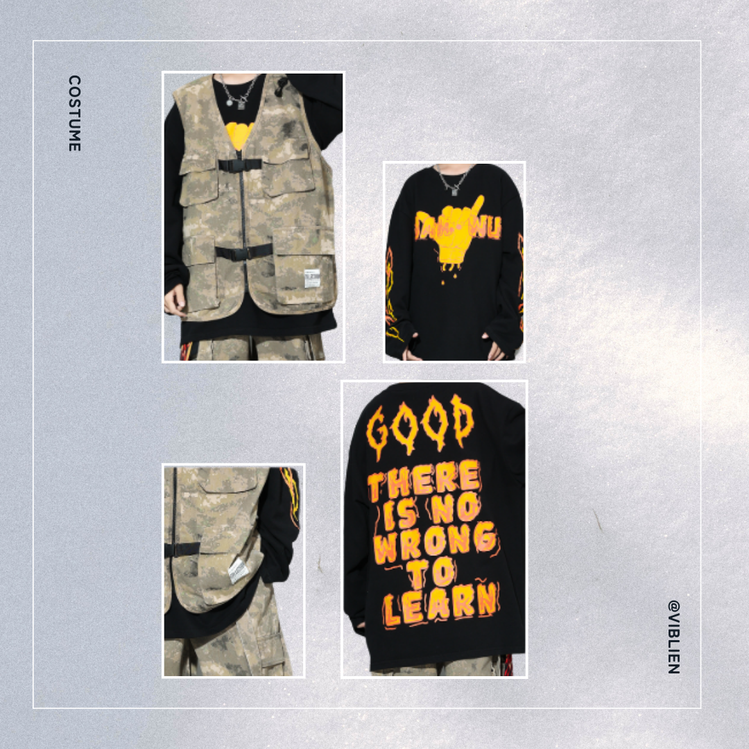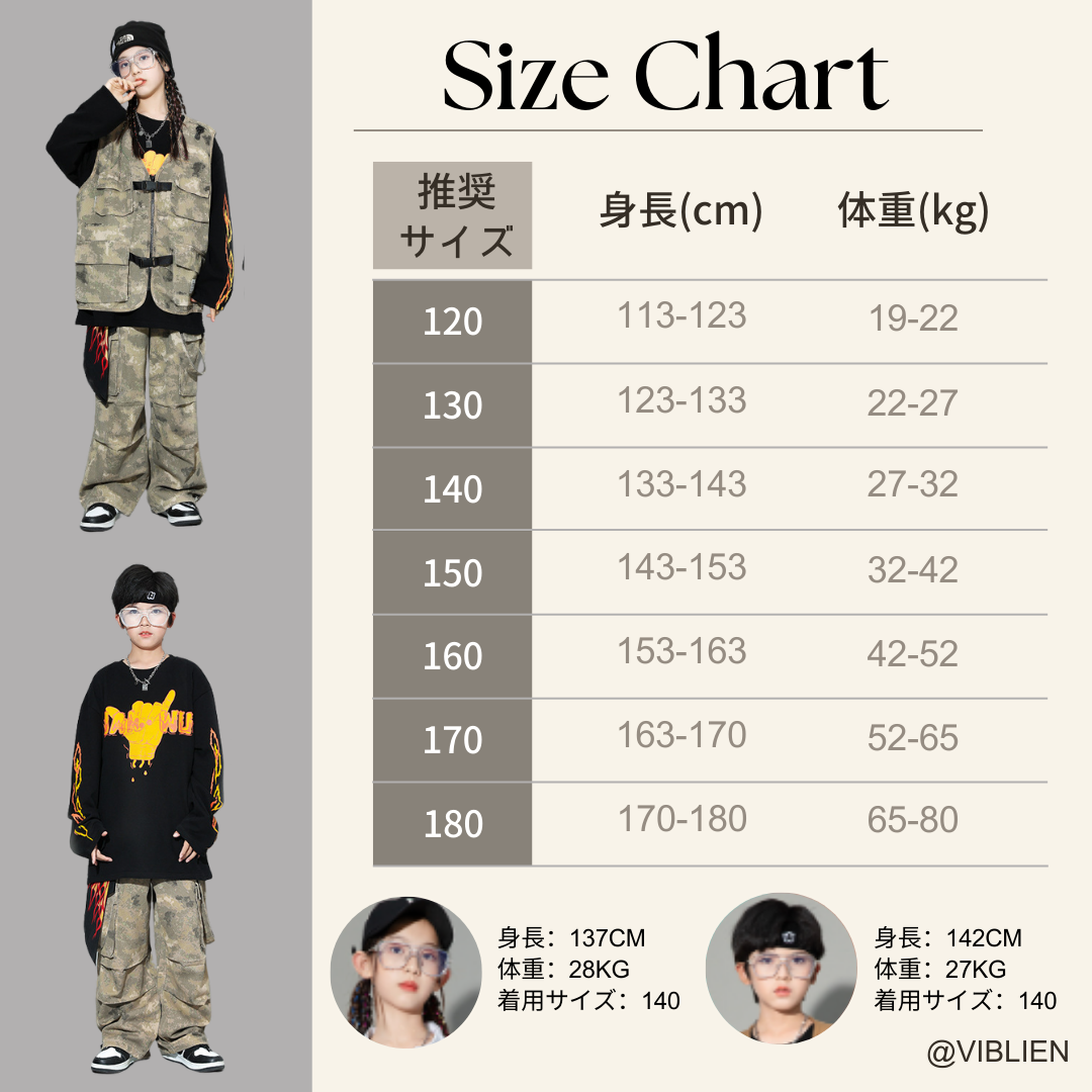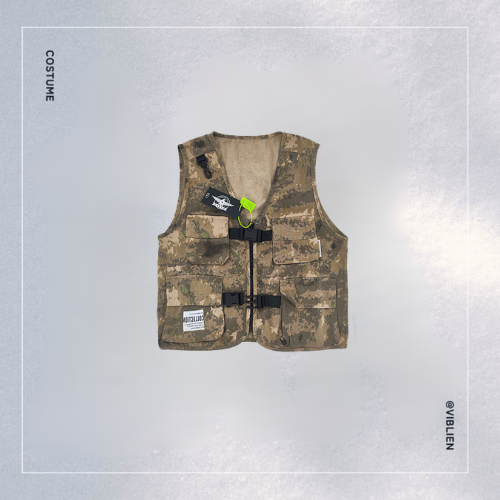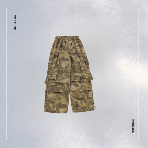 🟫 ベスト&パンツ:統一感のある迷彩柄で、ストリート感を演出🟩