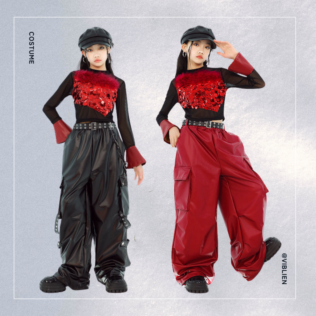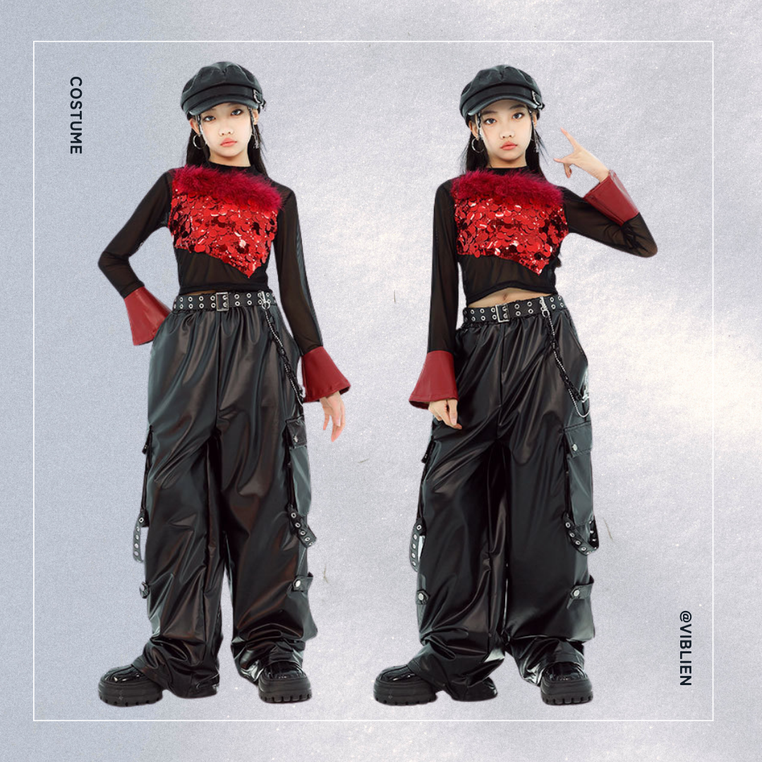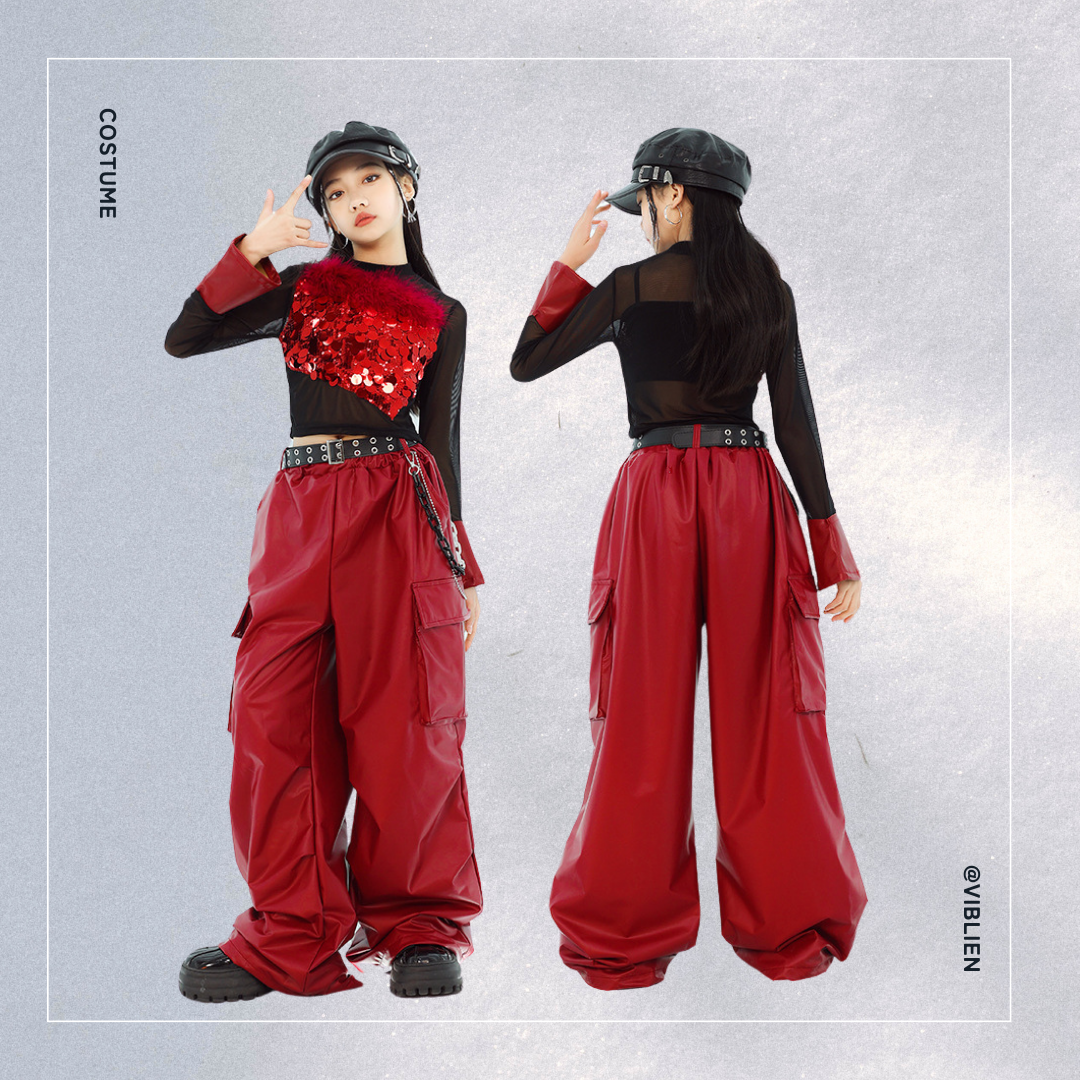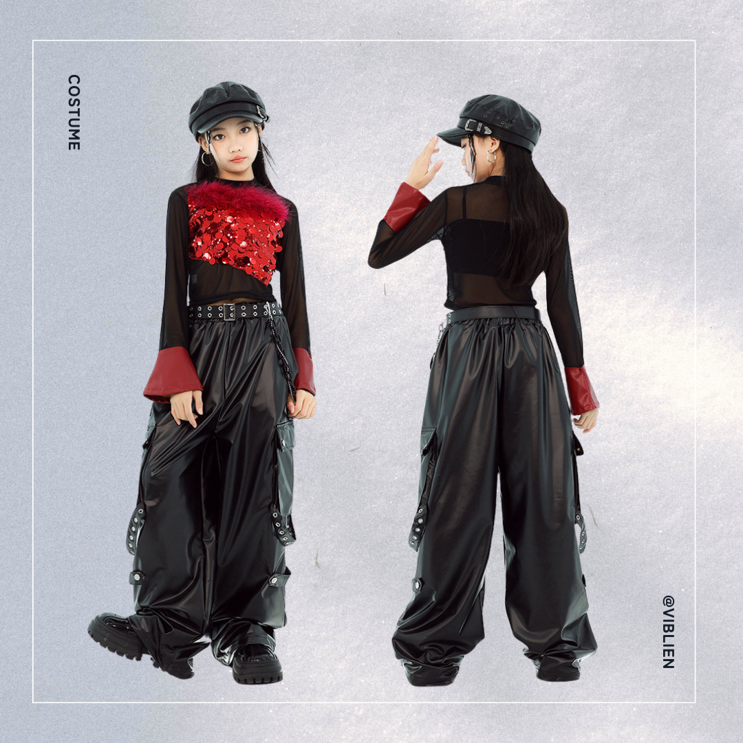 スパンコール×透け感トップスに、エッジの効いたワイドパンツを合わせた、最先端のストリートスタイル🖤❤️