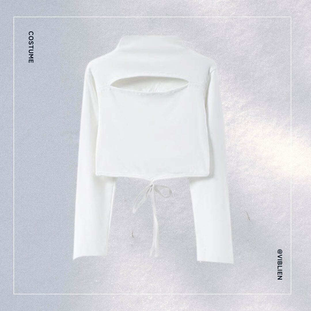 カットアウト入りのホワイト長袖トップスは、