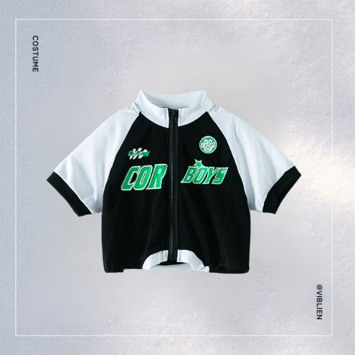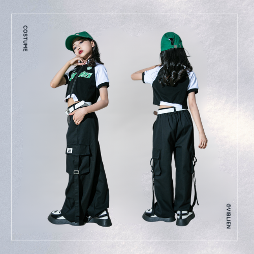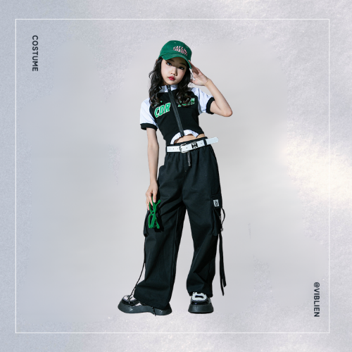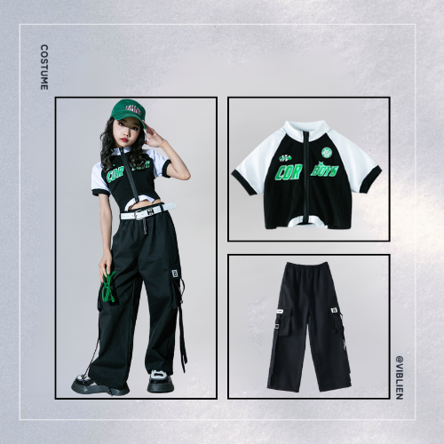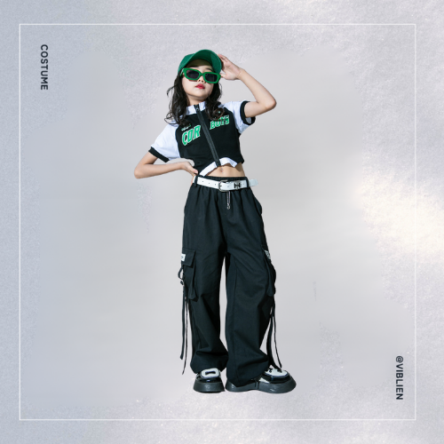 ブラックを基調に、ストリートとスポーティを融合させたクールなダンス衣装。